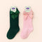 Chieea - Pair of 2 - Long Socks - Bow - Pink & Green