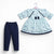 P&P - 2 Pieces - Frock Set - Light Blue - Bow & Leaves