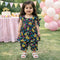 PR - 3 Pieces - Frock Set - Navy - Yellow Green Flowers
